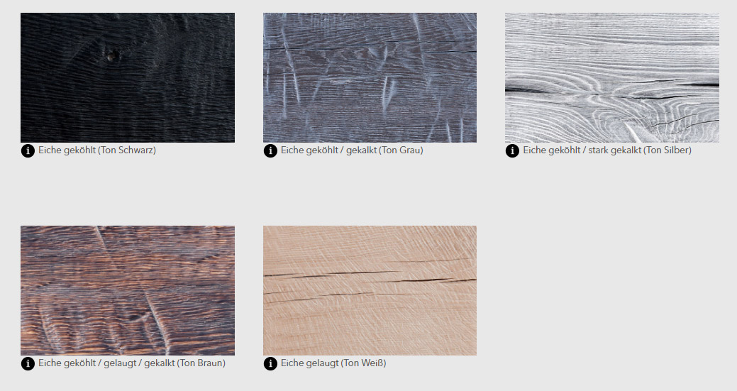 Chêne charbonné/brossé : le chêne est traité au feu avec un bec bunsen et brossé.