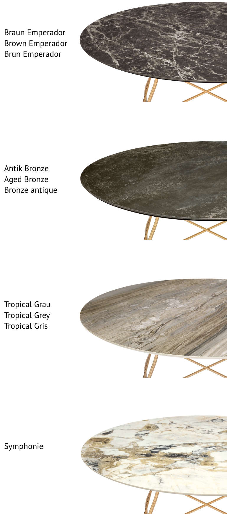 Une gamme de tables idéales aussi bien à la maison qu'au bureau. La structure légère en acier se caractérise par l’utilisation de l’élément en croix qui relie les pieds sur chacun des quatre côtés et soutient le plateau. La collection se décline dans les versions carrée, ovale et ronde.
