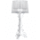 Une lampe au style unique, un des best-sellers de Kartell : Bourgie unit d'une merveilleuse façon style classique, diversité et tradition avec innovation et esprit. Le socle est réalisé dans un style baroque et se compose de trois niveaux décorés qui forment une croix. L'abat-jour est plissé de façon à susciter de merveilleux reflets lumineux lorsque la lampe est allumée. Grâce à un système spécial de fixation de l'abat-jour, la lampe est réglable en trois hauteurs selon l'utilisation: 68cm, 73cm et 78cm. Bourgie peut être utilisée comme une lampe décorative pour la table ou le bureau, mais aussi comme lumière d'ambiance sur la petite table du salon, dans la chambre à coucher ou encore comme sculpture lumineuse sur le sol. Après le grand succès du modèle transparent en couleur noire, or et chrome, Kartel élargit la collection avec une nouvelle version en habit de fête avec un intérieur doré et un extérieur couvrant en blanc.