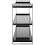 Un système flexible d'étagères pour la maison ou le bureau. Le concept consiste en de petites tables et un système d'étagères dont le plateau évoque les plateaux japonais par le design. Les plateaux en polyméthacrylate de méthyle (PMMA) massif en noir ou en blanc brillant sont proposés en trois tailles et sont posés sur des cadres de hauteur différente, sur pieds fixes ou sur roulettes. La collection procure une sensation de légèreté et d'élégance sans y perdre sa capacité de stabilité et de résistance aux intempéries. Les tables sont disponibles en deux versions rectangulaires de 40cm x 80cm ou 40cm  x 140cm, et en une version carrée 80cm x 80cm. Cadre en acier chromé. Montage facile grâce à un système clip. Emballage plat pour un transport et un stockage aisés. La collection intègre également une version avec trois plateaux superposés de 80cm de large sur un cadre mobile sur roulette ou en largeur de 140cm comme bibliothèque.