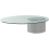 Cette table imposante et élégante possède un plateau en verre transparent et un piètement excentrique. Disponible en version table basse ou table de salle à manger. Plateau ovale en verre durci avec insert acier poli. Cadre en tôle d'acier. Plateau équilibré par des poids internes.