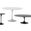 La table haute de la collection Saarinen Tulip se prête à une utilisation en salle à manger ou en salle de conférence. Disponible avec un plateau rond ou ovale, la table est proposée en différentes versions. En plus des tables présentées ici avec un plateau en stratifié la collection propose la Saarinen Tulip avec un plateau en marbre ou un plateau en placage d'érable nature, de chêne nature, de chêne couleur ébène, de noyer nature, de palissandre Santos et de teck. Le piètement colonne caractéristique de la série Saarinen Tulip est en fonte d'aluminium en version en blanc, noir ou couleur platine. Le pied en noir et en blanc est protégé avec une finition Rilsan. Le pied couleur platine est revêtu d'une finition polyuréthane transparente.