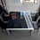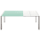 Le fin plateau de la table est en verre et les allonges sont en Alucompact®. Le plateau en verre est durci et laqué sur l'envers pour dissimuler le système d'allonge et préserver la transparence et la brillance du matériau. La structure et les pieds avec volume expansif sont en aluminium anodisé ou unicolore dans la couleur du plateau.