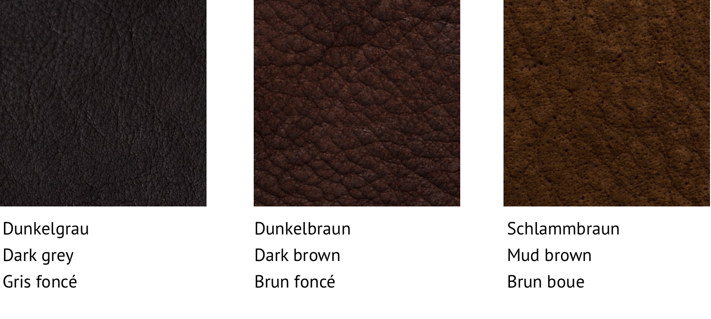 La chaise Gabon est proposée avec un choix de revêtements en cuirs et tissus d'excellente qualité qui existent dans une large gamme de coloris.