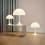 Le luminaire émet une lumière douce et feutrée. La version métallique dirige la lumière directement vers le bas, créant un éclairage doux et confortable grâce à un abat-jour peint en blanc à l'intérieur et à l'effet réfléchissant de son pied en forme de trompette. La version acrylique diffuse une atmosphère lumineuse confortable grâce à sa couleur et à son abat-jour interne réfléchissant la lumière vers le bas.
