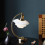 La lampe de table avec trois abat-jours en verre diffuse une lumière diffuse douce créant un éclairage d’ambiance dans la pièce tout en projetant de la lumière dirigée vers le bas sur la surface. La tête est réglable et peut tourner sur les côtés.