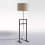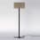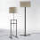 Le lampadaire Leukon dispose d'un socle en chrome bronzé ou brillant. L'abat-jour existe en version parchemin ou tissu. Le dessus de la lampe est en verre gravé. Le lampadaire Leukon est également disponible dans une version réglable en hauteur.
