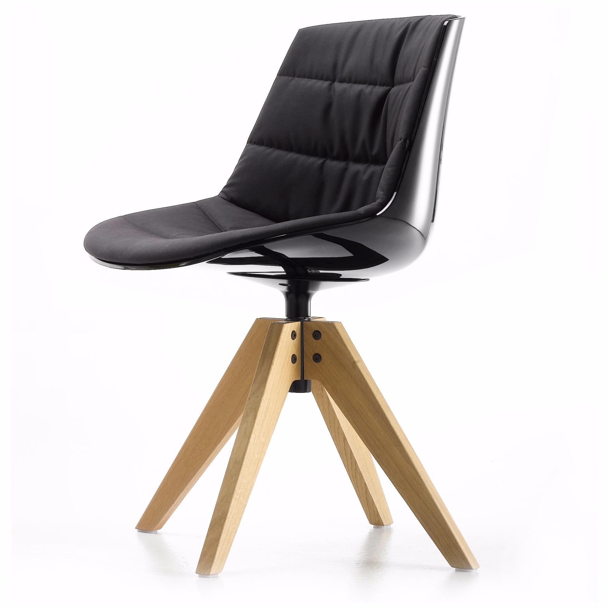 La collection comprend également la chaise Flow Chair avec capitonnage, des modèles avec d'autres types de cadres et le modèle Flow Slim avec accoudoirs et dossier bas.
