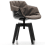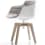 Le modèle proposé dispose d'un piètement pivotant 4 branches en chêne avec une tige centrale en acier laquée blanc mat ou gris graphite mat. La coque en polyuréthane est capitonnée moelleux avec un revêtement cuir ou tissu au choix. La coque est laquée en blanc ou en noir mat. Le cadre en chêne est disponible en différentes teintes.