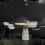 La table îcone, de la silhouette fluide et elegante, révèle completement la nature de ce qu’elle représente: « une table ronde » qui lévite apparemment au-dessus d’une base inorganique solide.
