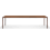 La table est revêtue d'un placage de noyer massif nature 2 mm. Les lames en bois massif, dans leurs nuances et infinies variances, caractérisent véritablement la surface. Les irrégularités visuelles sont à considérées comme des éléments précieux, uniques et naturels. La surface naturelle est mise en valeur par sa finition qui se transforme en expérience esthétique et tactile.
