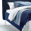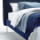 Le cadre et la tête de lit forment une structure robuste. Pieds métal disponibles avec différentes finitions.