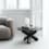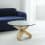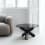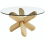 Table basse / table d'appoint ronde avec un cadre en chêne massif (nature ou noir) et un plateau en verre cristal ou verre fumé contrastant.