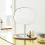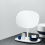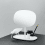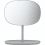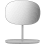 Petit miroir de table inclinable avec plateau. La forme douce du miroir est contrastée par les matériaux utilisés - l'acier et le verre.