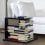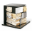 Petite version de la bibliothèque Ptolomeo pivotante à 360° avec quatre colonnes en métal sur laquelle sont fixés des étagères fines également en métal. Ces étagères disparaissent de la vue lorsqu'elles sont remplies de livres. Structure et étagères en tôle noire. Base en acier inoxydable brillant. Bibliothèque ou table de chevet.