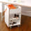 Box de rangement sur roulettes assorti au bureau pour enfant Eiermann Junior de Richard Lampert. Matériau: placage de bouleau finition en blanc avec poignées courroies en orange.
