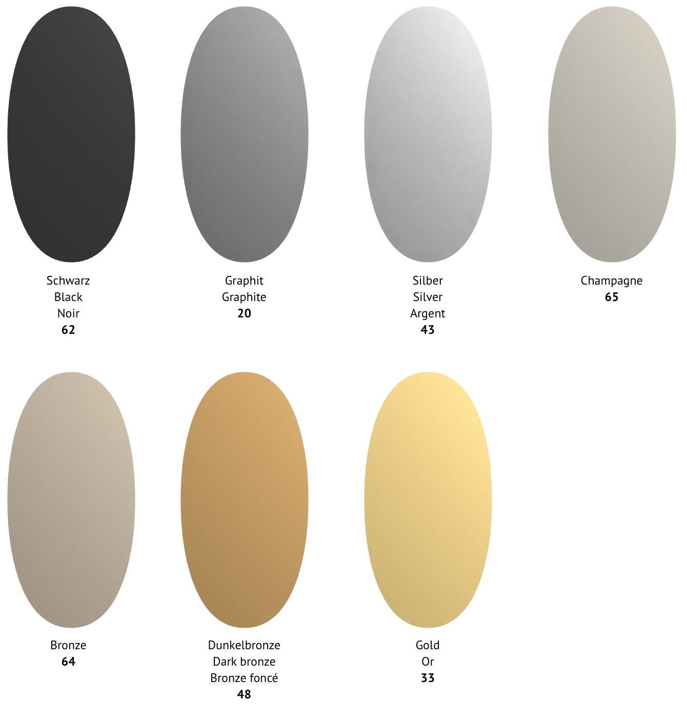 La lampe est faite d‘une structure en aluminium moulé sous pression, d’un élément optique en silicone le long du périmètre et d’un écran mince. Cet écran, monté sur la structure à l’aide de 2 supports prévus à cet effet, est facile à retirer et existe en divers matériaux : métal, bois massif, bois plaqué ou panneaux de fibres de bois fraisés et usinés sur la base de plans tridimensionnels originaux ; miroir ; tissu et autres matériaux et décorations à la demande.