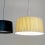 L'abat-jour de la suspension GT7 est réalisé en bandes textiles de 6cm de large couleur nature, noire ou ambre rouge. L'abat-jour en forme de cône abrite 3 ampoules et la partie supérieure de l'ouverture est recouverte par un réflecteur en métal opaque qui réduit l'éclairage vers le haut. Une plaque en fibres de verre à l'intérieur de l'abat-jour couvre les ampoules et dispense des ronds de lumière sur le sol. La suspension GT7 convient particulièrement aux pièces à plafond haut.