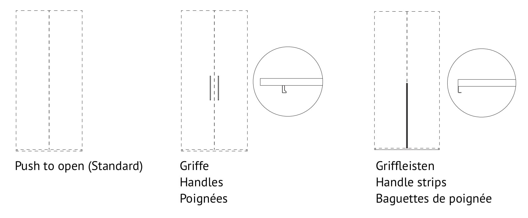 Un plus pratique : le mécanisme Tip-to-open de haute qualité pour une ouverture et une fermeture faciles ainsi que deux poignées verticales différentes qui peuvent être montées alternativement sur les portes. Son équipement variable rend cette armoire intéressante pour tous ceux qui recherchent un aménagement flexible et fonctionnel. Ainsi, des étagères et des étagères à chaussures sont disponibles, tout comme des tringles à vêtements, des tiroirs, des séparations pour balais et, sur demande, un éclairage intérieur.