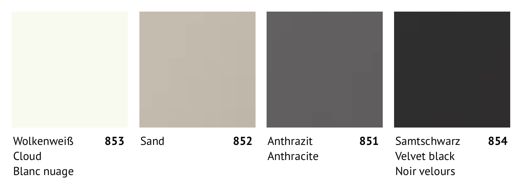 Disponible en deux hauteurs, deux profondeurs ainsi qu'en cinq largeurs, le meuble peut être choisi dans différentes versions de deux à six portes. La surface ultra mate des façades de portes revêtues de mélamine résistante est particulièrement noble grâce à son aspect et à son toucher veloutés - et toujours comme neuve grâce à l'effet anti-traces de doigts, même en cas d'utilisation fréquente.
