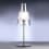 Lampe de table de grande simplicité avec un réflecteur conique en verre transparent, verre teinté couleur ou en porcelaine. Tige et pied rond nickelés brillant.