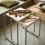 Cadre en acier tubulaire chromé, existe en laqué couleur. Plateau laqué ou placage de hêtre teinté en différentes couleurs. La version Pure Materials présente un plateau noyer ou chêne huilé. Tout nouveau: la petite table B9 avec plateau en verre.