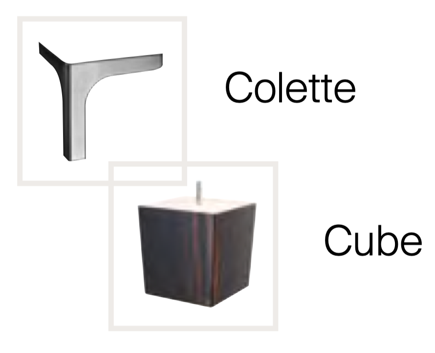 - Pied modèle Colette ou Cube - le pied central est ajusté à la commande