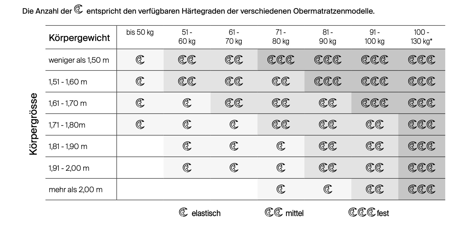 Il est possible de combiner différents degrés de fermeté au sein d'un même matelas à partir d'une largeur de 160 cm.