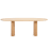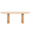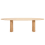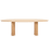 Le plateau en chêne massif est découpé à l'aide d'une machine CNC. Les pieds sont en placage de chêne et assemblés à l'aide de vis, d'inserts filetés et de plaques de montage pour une stabilité optimale. Le plateau et les pieds sont recouverts d'un vernis transparent, mat et hydrofuge qui protège la surface, préserve l'aspect élégant de la table et facilite son entretien.