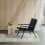 Initialement prévu pour être placé devant la cheminée dans le Vipp Shelter, ce fauteuil comporte une assise basse et un dossier incliné conçus pour encourager la conversation.