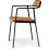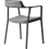Les accoudoirs élancés s’insèrent directement dans le discret dossier capitonné, donnant à la chaise Vipp une expression presque aérienne malgré ses composants solides.