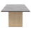 Les lourds plateaux de table sont soutenus par deux pieds parallèles en chêne massif, pourvus de rainures verticales. Elles apportent une texture et une stabilité supplémentaires.
