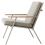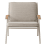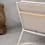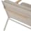 Un tressage gris s'étend entre les cadres en aluminium et assure une assise confortable, tandis que le dossier est délicatement enveloppé de polyrattan de couleur naturelle. Le revêtement gris et le rembourrage assorti sont contrastés par des détails chaleureux et tactiles tels que les profilés arrondis en teck sur les accoudoirs, le teck se patinant avec le temps et s'adaptant à la teinte du polyrattan.