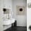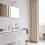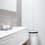 Les angles arrondis et le plateau de table flottant ajoutent une touche de douceur à l’esthétique épurée des modules de salle de bains Vipp.