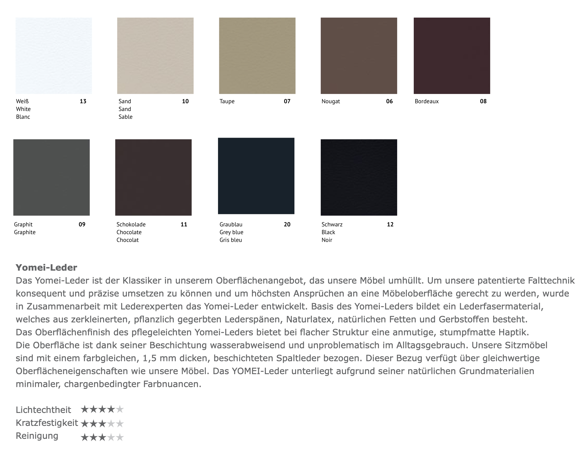 Quand vous êtes devant un meuble Yomei, vous remarquez immédiatement la finesse des contours, la grande qualité des matériaux, la précision du travail et l’intelligence du design, parfois révélée au second regard. Yomei incarne la fonctionnalité dans le design. En 2008, son secrétaire modulable « Magic desk » reçoit le prestigieux Red Dot Design Award. Le « Magic cube » (2009) convainc par ses talents multiples et le fauteuil « Wrap », à l’égal du canapé « Sumo » en cuir, sait comment offrir un confort d’assise maximal.