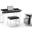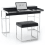 MAGIC DESK - une interprétation innovante du secrétaire classique. En position fermée, le meuble évoque un sideboard élégant. Lorsque le plateau est déplié grâce à d'élégantes charnières en acier inoxydable, le bureau s'étend sur une surface de 61,5cm et révèle son espace intérieur: deux tiroirs cuir, une prise triple et une conduite de câble. Le câble circule en toute invisibilité derrière le cadre en acier inoxydable poli.