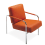 Cadre en acier tubulaire chromé, cadre coussin en acier laqué et garnissage polyuréthane. Réglable deux positions. Revêtement déhoussable en coton ou cuir.