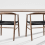 Le piètement est disponible en chêne ou en noyer américain, traité à l'huile de cire dure naturelle, ou en chêne teinté noir graphite.