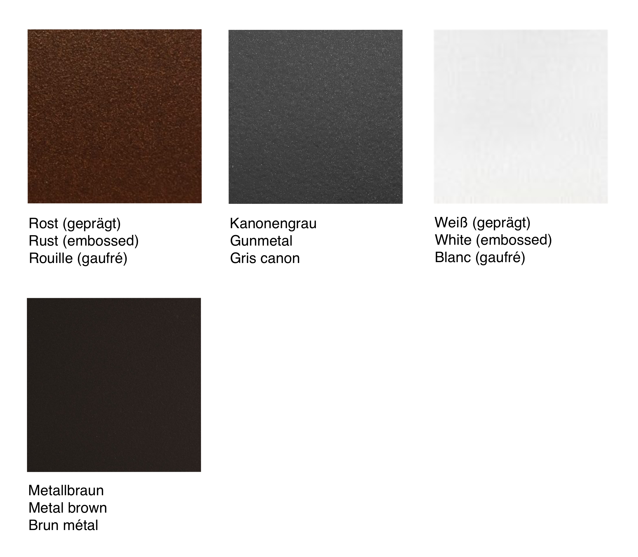 Structure et accoudoirs en tube d'acier carré de 10 x 10 mm. Assise et dossier en tôle d'acier de 1 mm d'épaisseur. Laquage époxy en noir cuivré (sandtouchcolour) pour l'intérieur ou traitement outdoor et laquage époxy polyester en gaufrage couleur rouille, gaufrage blanc, couleur gunmetal ou brun métal. Des coussins d'assise assortis avec aimants sont disponible séparément sur demande au choix en similicuir noir ou blanc.